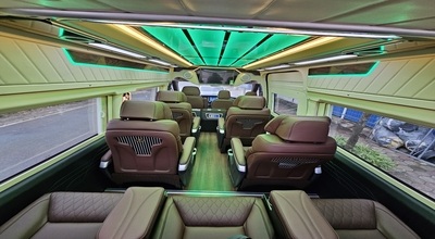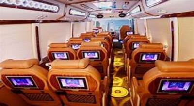 - Trang bị chỉ riêng dịch vụ thuê xe 9 chỗ Limousine cao cấp mới có: Quầy bar mini tạo điểm nhấn độc đáo và ghế massage rộng rãi thoải mái, kết hợp với đèn trần đa sắc, ánh sáng dịu nhẹ và tivi điều khiển bằng giọng nói.